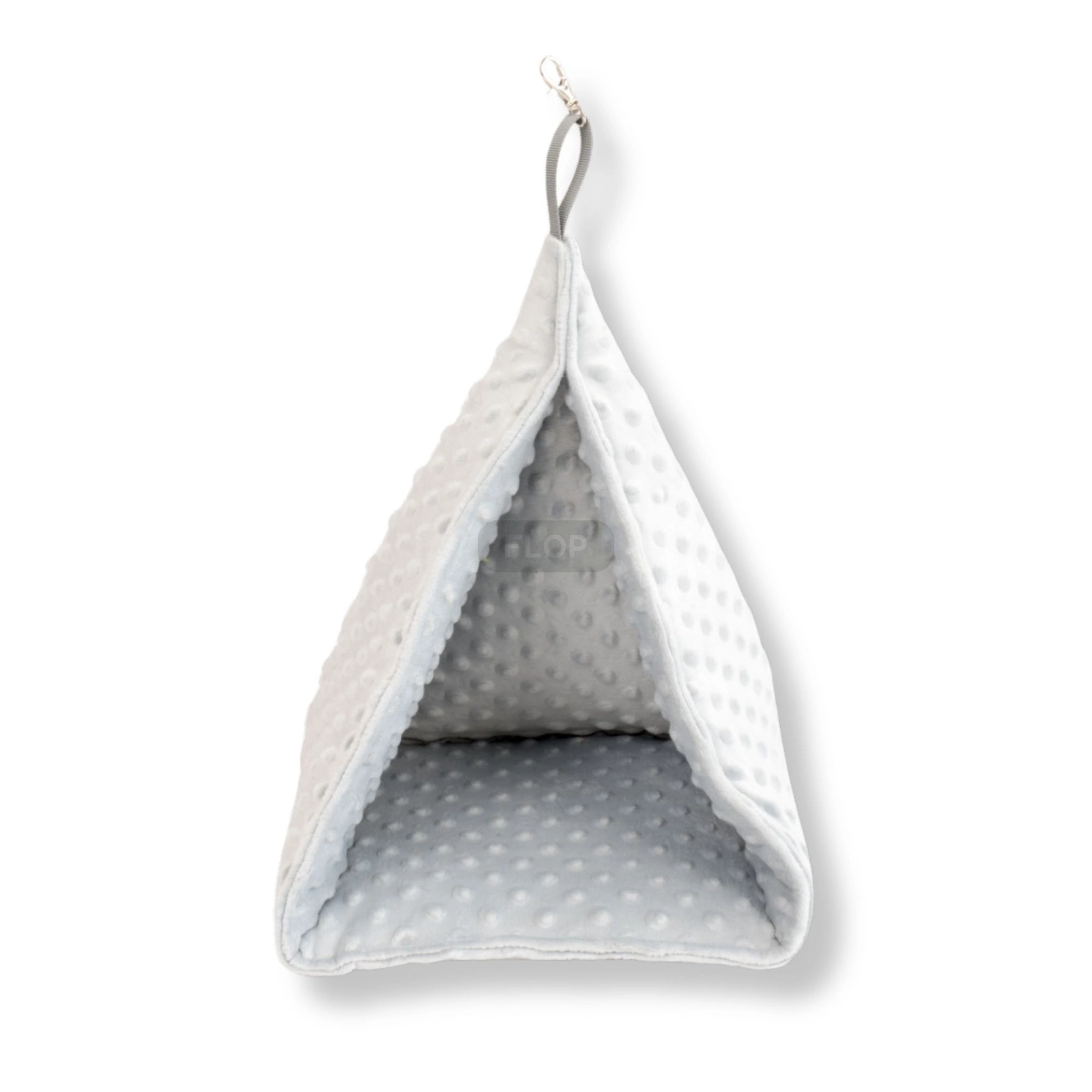 Die hängende Pyramide aus weichem Minky-Fleece ist ein universelles Häuschen, das für Komfort und Sicherheit kleiner Heimtiere entwickelt wurde – ideal für Zwergkaninchen, Meerschweinchen, Ratten, Chinchillas und andere Nager. Sie dient sowohl als kuscheliges Versteck als auch als stimulierendes Bewegungselement.